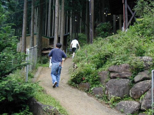 無線機などの荷物を運び上げています。 今回のキャンプ場はバンガローがあるところの坂がきつく、しかも宿泊するバンガローはキャンプ場の一番上です。 がっばって!! |