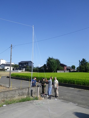 コンテスト当日の日中に、HFダイポール、50MHz八木等を設営しました。