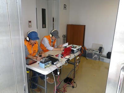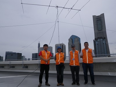 いつものように、屋上に1時間ほどで3つのアンテナを設営して、運用開始です。