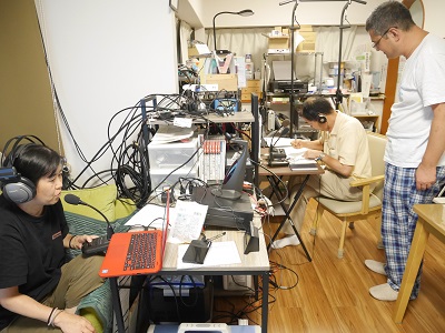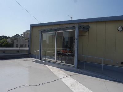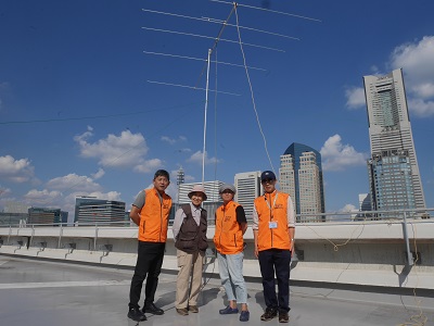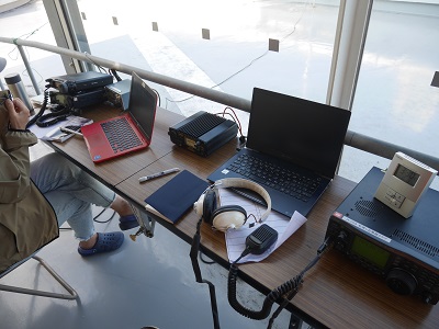 普段はエレベータホール内での運用ですが、天気が良いので、屋上のひさしの下で運用しました。