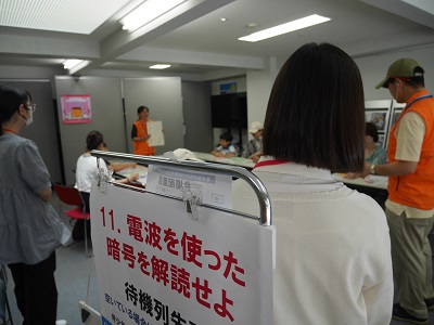 昨年と同様に、FM送信機とFMラジオを使ってモールス信号を聞き取って問題を解く形式で行いました。