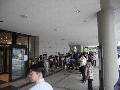 今年は朝から強風と強雨の悪天候にかかわらず、開場前には100人を超す待機列が。