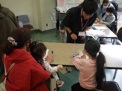 小さい子どもには、ホッキキスを押す力が弱いとか、配線が外れてしまうトラブルもありました。次回に向けて検討課題です。