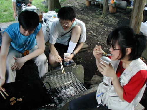 シシャモがいい感じに焼けたので食べています キャンプ慣れした方が参加してるので快適に強火が使えました(^o^) |