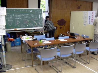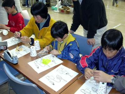天気が中途半端に悪かったせいか結構来場者が多く、「マイクを作ろう」は盛況のうちに終わりました。