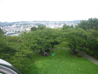 頂上の展望台から見た横浜方面。観音崎公園を彷彿とするようなロケーションです。