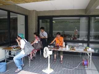 連日の猛暑の中、無線体験の場所はちょっと過酷な環境でしたが、3名のボランティア含む会員メンバーは精力的に活動することができました。